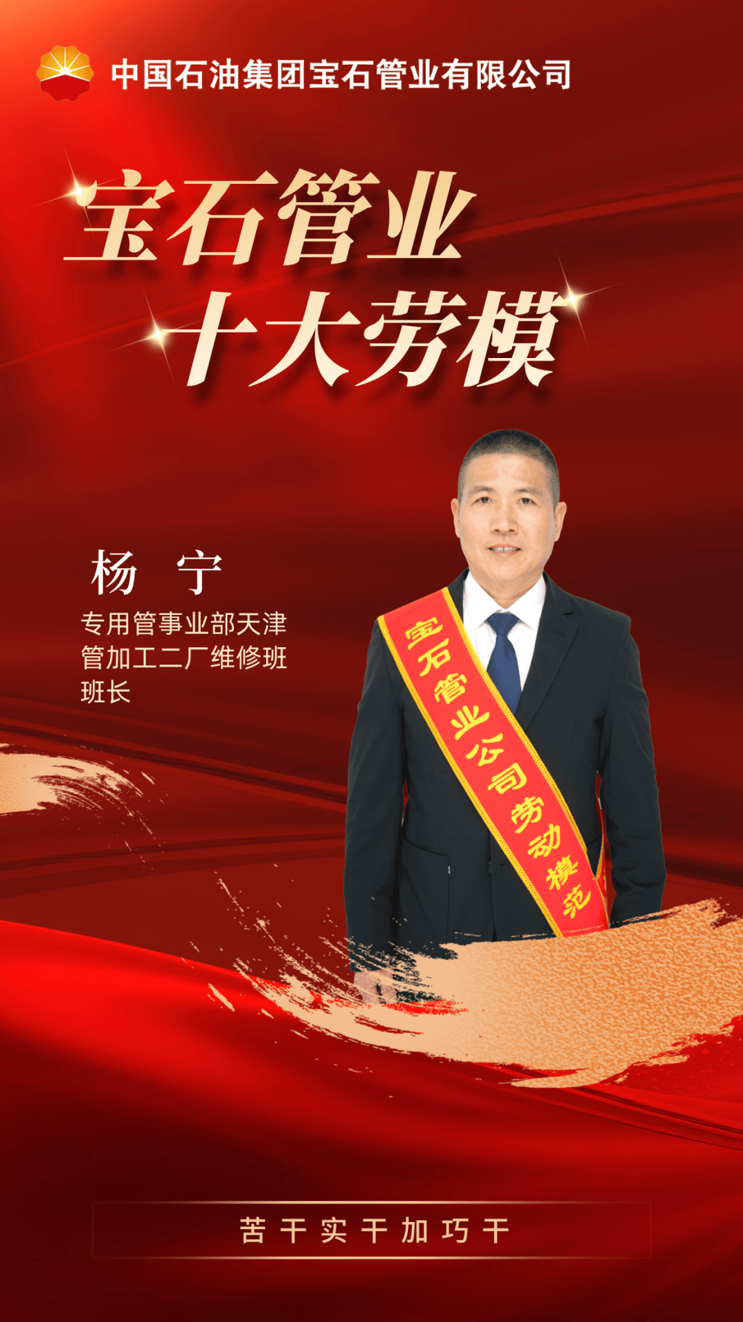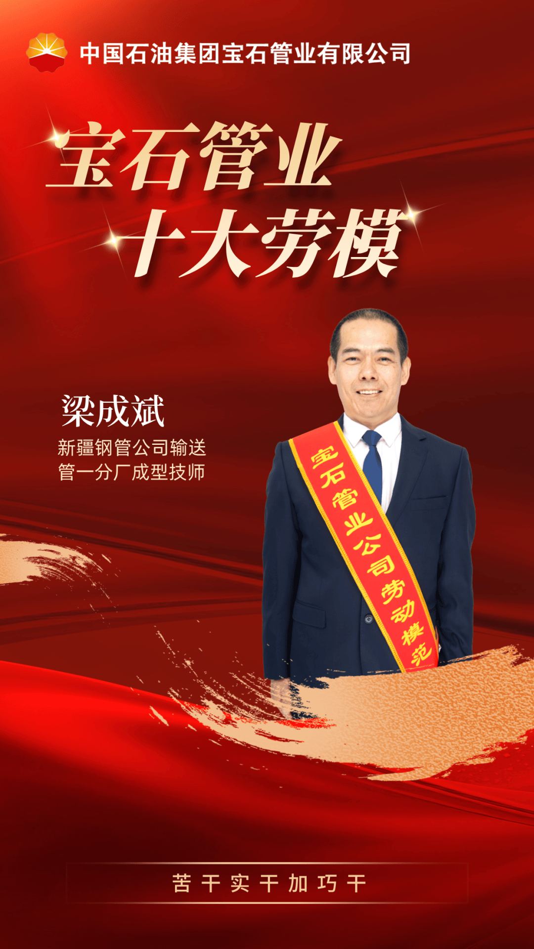 梁成斌2012年作为生产骨干投身新疆钢管公司,十几年如一日坚守奉献,践行宝石管业“干”字文化。他近30载深耕螺旋成型岗位,参与新疆钢管公司设备安装调试,见证首根钢管诞生。在师带徒工作中,他始终秉持“干中学、学中干”的理念,悉心培育青年人才。2019年,他以“初调、细调、精调”工作法,助力该公司产品规格上扩直径2400、下延直径377调试成功,创新三辊布局,破解钢管错边、管径超差难题。2024年调到输送管一分厂后,他全面分析成型质量,细化修正数据,解决多项连续性质量缺陷,完善成型创新与实用经验融合机制。