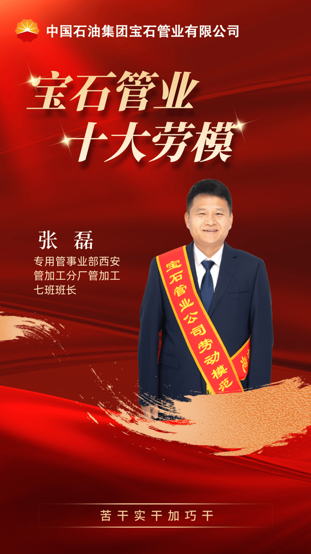 张磊作为公司标杆班组带头人,创新推行“强弱互补结对帮扶”机制,成功带动结对班组提升产量、降低能耗,让“创优生产”的理念在各班组落地生根。通过一系列针对性举措,实现特殊扣产品单班产能提升10.34%。在人才梯队建设方面,牵头构建“师带徒+现场教学+技能比武”三位一体培养模式,打造出“通三岗、会两岗、精一岗”的复合型人才队伍。他深耕精益管理,试验推广的快速换模技术推动分厂换道效率提升12%;坚持精打细算控成本,总结提炼出特殊扣生产及设备检修节电方法。作为红色服务队骨干成员,他先后奔赴井场提供技术服务支持60余次,精准破解现场技术难题15项。工作中,以“331工作法”和“三石文化”为引领,带领班组屡获殊荣,用实干担当诠释了新时代工匠精神。