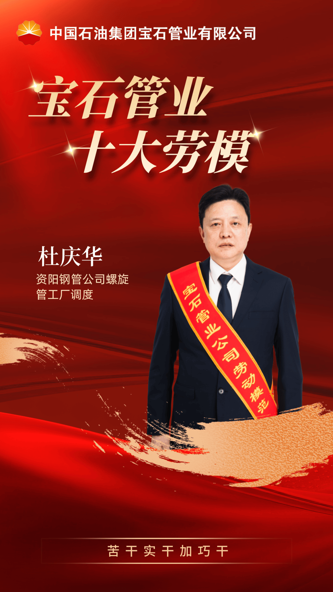 杜庆华扎根一线余年,始终冲锋在前,勤恳履职。作为焊接高级技师,他带领团队攻克大口径钢管不圆度控制、厚壁管线焊缝气孔缺欠等多项技术难题,使大口径重大管线%,厚壁管气孔缺欠率降低21.4%,有力保障了重大管线稳定供应。作为“杜庆华党员先锋队”队长,他带领先锋队完成技术革新20余项、工艺优化5项,创造经济效益135万余元,是攻坚克难、实干奉献的先进典范。同时,他还致力于技术传承与青年培养,制作课件、举办专题培训,培养多名关键岗位技术人员。