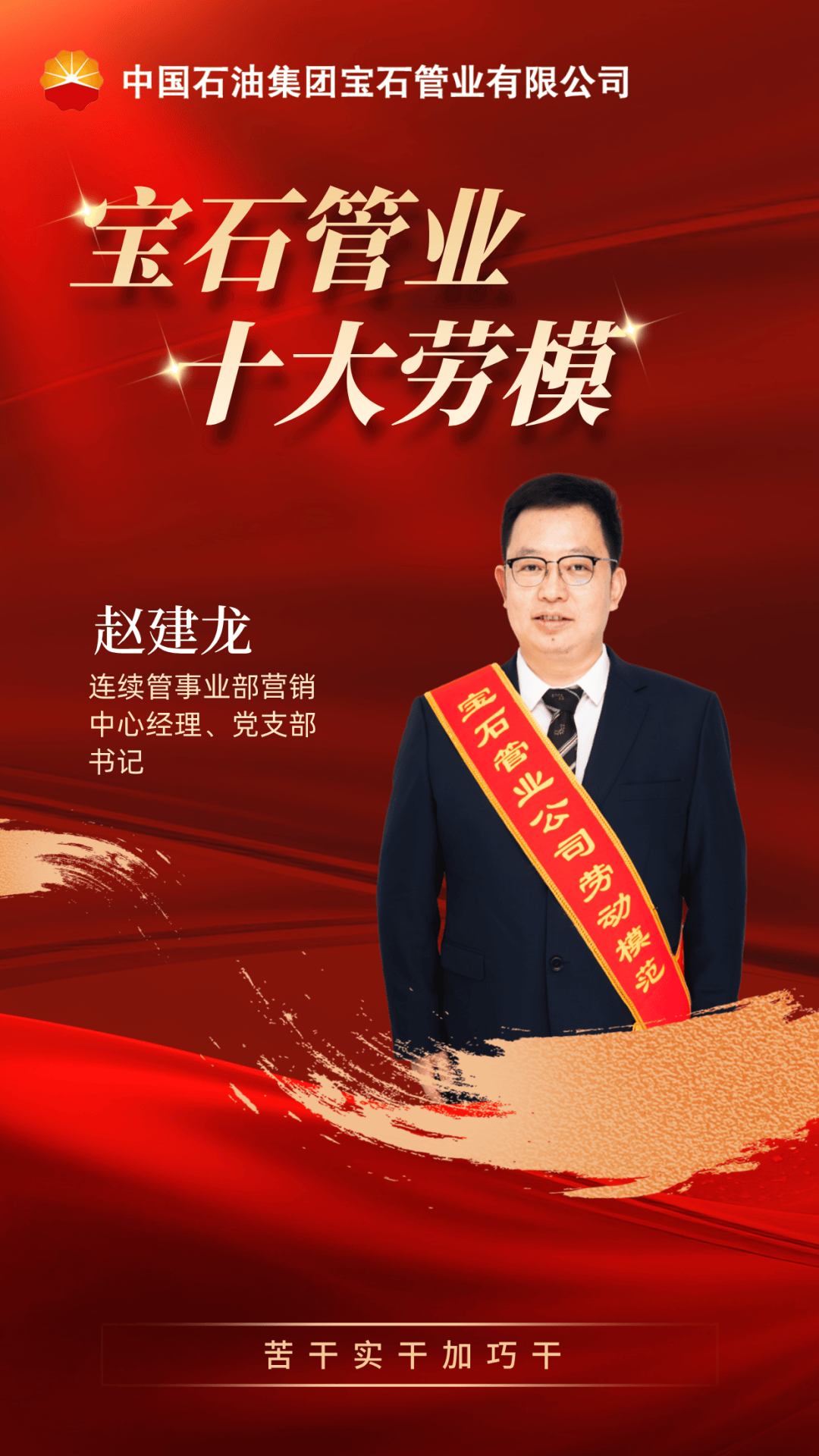 赵建龙深耕连续油管领域多年,全程参与产品设计、开发、制造及应用场景挖掘,精准锚定客户需求拓展市场。2025年,走访重点客户42次,以用户心态做好市场营销工作,巩固市场份额。成功承揽内部连续管15000余吨;首次与中海油签订三年连续管框架合同;拿下两口“万米”连续油管订单,11500米超高强度连续管迈向“深地塔科1井”;首盘多通道连续油管助推吉林油田CO2分层注气提高原油采收率;借助高层走访精准施策,长庆油田RTP管订货量创新高,同比增长 141%。年度结算额、销售收入、回款指标均超额完成任务,筑牢市场根基,以实干诠释担当。